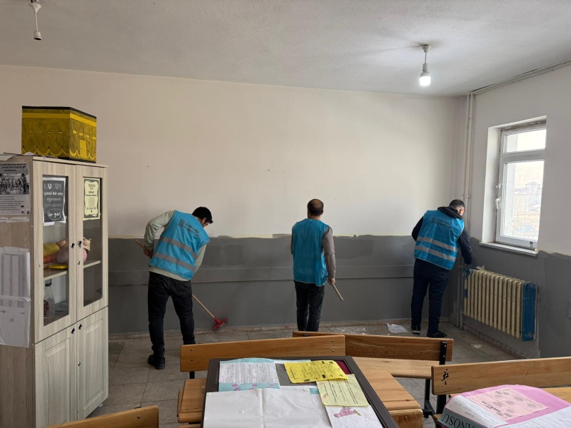 Dersliklerden koridorlara kadar titizlikle yürütülen boyama faaliyetleri sonucunda, okullar pırıl pırıl bir görünüme kavuştu.